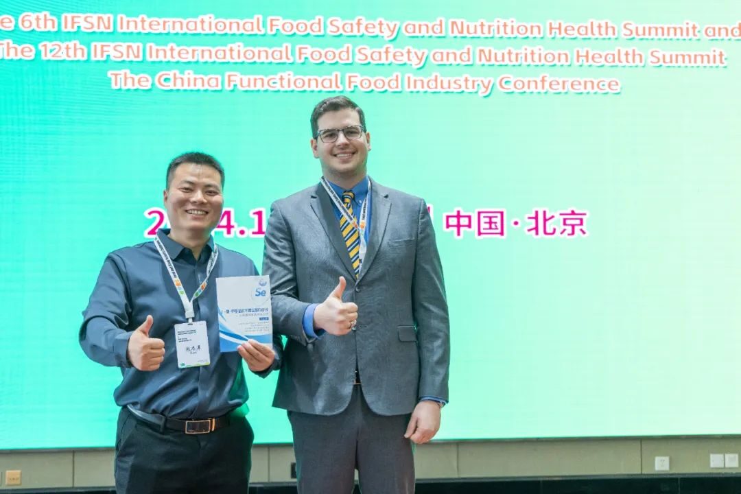 Zhao Zhiyong, General Manager of Puhui Tiancheng, held the “White Paper on L-Seleno-Methylselenocysteine” and took a photo with renowned nutrition and food safety expert, Academician Chen Junshi of the Chinese Academy of Engineering.