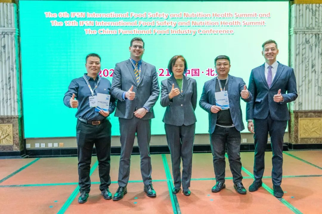 Zhao Zhiyong, General Manager of Puhui Tiancheng (first from left), held the “White Paper on L-selenomethylselenocysteine” and took a photo with Mr. Joshua DeMoss, Director of the US Department of Agriculture at the US Embassy in Beijing (second from left), Ms. Du He, Executive Vice President and Secretary General of the Nutrition Guidance Working Committee of the China Food Industry Association (center), and Mr. Clinton Priestley, Director of the China Office of the US Food and Drug Administration (first from right).